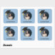 Your favourite photo and customised text highlight these personalised graduation cap square stickers.