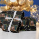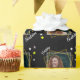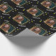 Personalised elegant art deco style wrapping paper with custom photo, stylish squares and custom text on black background
