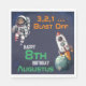 These custom party napkins feature an outer space theme. An image of an astronaut is pictured in the top left. A sample photo is placed in the helmet of the astronaut which you can replace with your own custom photo or image. Planet Earth is seen from a distance with a rocket ship shooting away from it. The background is a dark blue with faint stars and a galaxy pattern border.