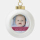 Baby's first christmas holiday decoration with customisable text and a place to add your own special family photo in stylish burgundy red and white. The perfect personalised gift this holiday season or a treasured family keepsake.