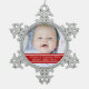 Baby's first christmas holiday decoration with customisable text and a place to add your own special family photo in stylish red and white. The perfect personalised gift this holiday season or a treasured family keepsake.
