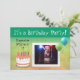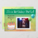 Great for any age or gender! Colourful fun invite with cake and balloons. Green and yellow theme great for girls or boys. Add a photo of the guest of honour. Include your custom festivity information on back.