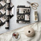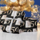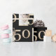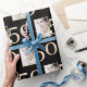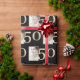 This custom gift wrapping paper features a fabulous 50th birthday or anniversary theme on a black background. A sample photograph is printed to the left of a large number "50" in a gold foil design. You can personalise the wrapping paper to include your own custom photo or other image. It's perfect for a birthday, anniversary, or other special occasion.