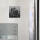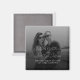 This modern wedding or engagement keepsake magnet features a black and white photograph of the couple across the background which you can replace with your own custom photo. A black gradient extends from the bottom portion.