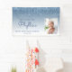 Welcome guests with this chic, glamourous 80th birthday party photo banner, featuring a sparkly blue faux glitter drip border and blue ombre background. Easily replace the sample image with a photo of the guest of honour. Personalise it with her name in blue handwriting script, with the birthday and date below in blue sans serif font.