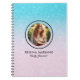 This design features a custom circle photo, beautiful pink and turquoise ombre with custom text in suggested black. It is Perfect for a daily journal.