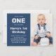 Custom Photo Blue Grey | Boy 1st Birthday Invitation