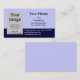 A plain business card template with sans serif letters and a sky blue background and a navy blue stripe at the bottom. Add your own image or logo to customise these business cards. Customise it to change card fonts, remove fields, change background colours and more.