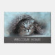 Welcome home to your cat and family! Add your own photo of your cat or kitten. With the text: Welcome Home. White text. Grey background.