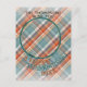 Unique, classic, cute and decorative Holiday season greeting card. With fun Happy Thanksgiving wish on a cosy warm colourful teal blue and orange red coloured plaid tartan pattern. With room to customise or personalise with your own cheerful photo and family name on the front of the card, and a customisable season greeting poem on the backside of the card with room for family member names.