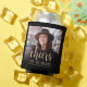 This custom 60th birthday can cooler features the guest of honour's personalised photo, name, and birthday, along with the word "Cheers" in elegant gold-coloured calligraphy script. A dark screen helps make the text pop. A great way to celebrate someone who's turning sixty!