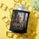 This custom 80th birthday can cooler features the guest of honour's personalised photo, name, and birthday, along with the word "Cheers" in elegant gold-coloured calligraphy script. A dark screen helps make the text pop. A great way to celebrate someone who's turning eighty!