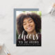 The front of this 30th birthday invitation features the guest of honour's photo with a white text overlay. The word "cheers" appears in elegant white calligraphy script, followed by "to 30 years" and the guest of honour's name and birthday in sans serif font. A dark screen helps make the text pop. Customise the reverse side with the name and party details in white on a dusty blue background. A great way to celebrate someone who's turning thirty!
