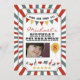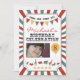 Custom Photo Circus Birthday Party Invitations -- trade the demo photo to a picture of your choice. Each circus invite also allows you to change the number on the balloon to how old your child will be for his or her birthday. Circus invites are decorated with stripes, stars, & pennants in old fashioned blues, yellows and reds. Giraffes, lions, monkeys, rhinos and elephants are also added for added decor.