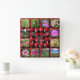 Custom Photo Collage Country Red Buffalo Plaid Square Wall Clock