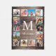 Create your own personalised 14 photo collage fleece blanket with your custom images on a rustic dark brown farmhouse style wooden plank background. The design also features your name or monogram. Add your favourite photos, designs or artworks to create something really unique.