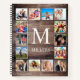 Create your own personalised 14 photo collage notebook with your custom images on a rustic dark brown farmhouse style wooden plank background. The design also features your name or monogram. Add your favourite photos, designs or artworks to create something really unique.