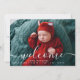 Custom Photo Collage Welcome Script Overlay Baby Announcement is a modern and chic way to announce the new addition to your family. Its design is unisex and suitable for both girls and boys. The front has a large photo with the welcome text in the white script and the baby name and birth stats template. The back has a 4 photo collage and a welcomed by line template as well as the baby's name in script.