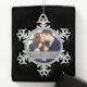 Couple's first Christmas together holiday decoration with customisable text and a place to add your own special family photo in stylish dark grey and white. The perfect personalised gift this holiday season or a treasured keepsake.