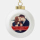 Couple's first Christmas together holiday decoration with customisable text and a place to add your own special family photo in stylish red and white. The perfect personalised gift this holiday season or a treasured keepsake.