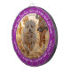 Custom Photo Dartboard template with personalized text and PLUM PURPLE 942193 round photo framing surround (other color surrounds available in store). Your face on a dartboard. One click personalize upper and lower text plus replace image, or full customization via Edit Screen. Regulation size with metal frame and 6 brass darts (Stars and Stripes + Union Jack flights). A fun gift for a darts player.