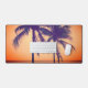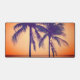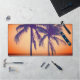 Custom photo desk mat for office or work bench. Personalise with your own picture and text. Tropical sunset with palm trees example.