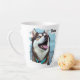 This customizable photo latte mug is the perfect way to celebrate your beloved dog, "Snow", or any favorite pet! Featuring a beautiful brown and white Husky with striking blue eyes, the design is framed by a stylish distressed blue watercolor background. It's easy to personalize—simply replace the sample photo and text with your own pet's picture and name. A unique, cherished gift for any dog mom, dog dad, or animal lover. Enjoy your favorite coffee or tea in this special 12 oz. mug.
