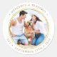 Add the finishing touch to your wedding with these cute custom photo stickers. Perfect to label your wedding favours to all your guests, and for envelope stickers to send out thank you cards . Customise these photo stickers with your favourite couples photo, dog of honours photo, or your newlywed photo with your dog, personalise with names and date. See our wedding collection for matching dog wedding announcements and dog save the date cards. COPYRIGHT © 2020 Judy Burrows, Black Dog Art - All Rights Reserved. Custom Photo Elegant Gold Wedding Classic Round Sticker