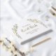 Let your guests write their wishes, thoughts, and memories in this elegant wedding guest book with the white and gold design personalised with your photo on the back side. The template makes it easy to type names and date of the event on the front side and spine to get a stylish unique guest book. Flourish elements decorate the front page.