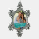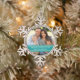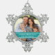 Family holiday decoration with customisable text and a place to add your own special family photo in stylish teal turquoise blue and white. The perfect personalised gift this holiday season or a treasured family keepsake.