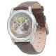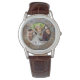 Rustic wood frame look watch for Dad, husband or Grandpa for Father's Day, his birthday, anniversary, etc- Rustic wood look frame that is scarred and distressed and appears beveled. Centred is custom photo, whether it's a family photo, picture of kids or grandkids, wedding photo, or any favourite photo. Personalised name or other custom text at bottom in matching brown lettering on translucent background. Stylish gift for Father's Day or for his birthday. He would love to show this off at work. More men's gifts in our Zazzle.com/angela65 shop, as well as other personalised watches for husbands, dads, and grandfathers. With faux metallic clock face numbers. Personalise however you like by adding your own text.