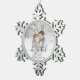 Custom Photo First Christmas Engaged Grey Script Snowflake Pewter Christmas Ornament