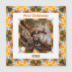 Custom Photo First Christmas Newly Weds New Home Magnet. A square photo fridge magnet to celebrate your happily ever after at Christmas. Replace the photo with your own. A square photo will work best. Edit the text using the Personalise button. A merry maximalist, geometric pattern design for Autumn, Fall, Winter, and Christmas. A newly married couple or someone moving into a new house will love being celebrated with this bright warm orange, and traditional tree green and winter grey patterned magnet, with a picture of themselves celebrating. A budget friendly gift for a festive Christmas housewarming or a festive first anniversary.