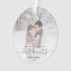 Commemorate the first Christmas of your marriage with this beautiful modern keepsake ornament. The gray text reads "Our first Christmas as Mr & Mrs," with the words "Mr & Mrs" in elegant handwriting script with flourishes before and after. Replace the sample image with your favorite photo, and add your last name and the year. A white gradient filter helps make the text pop.