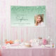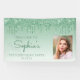 Welcome guests with this chic, glamourous 18th birthday party photo banner, featuring a sparkly green faux glitter drip border and green ombre background. Easily replace the sample image with a photo of the guest of honour. Personalise it with her name in green handwriting script, with the birthday and date below in green sans serif font.