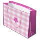 Cute Trendy Pink White Plaid Pattern with Photo "Happy 15th Birthday" Large Size Gift Bag Design.
