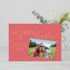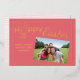 Unique and trendy gold foil Happy Easter card with a cute little bunny depicting the letter O in the classy Hoppy Easter text, on a coral red pink background. With room to customise or personalise with a photo of your choice, your own text, family or individual names. The back side of the card is decorated with a small swiss polka dots pattern in a matching colour.