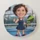 Custom Photo Head Padel/Pickleball Player Caricatu Round Cushion