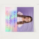 A tapestry for a Quinceañera party. A holographic background in purple, pink and mint green.