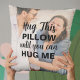 Custom photo throw pillow with the quote "Hug this pillow until you can hug me". Great gift from a boyfriend or husband to a long-distance girlfriend or wife if you live in a different state or are deployed. Perfect for a birthday, anniversary, Valentine's day, or Christmas.