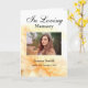 A beautiful photo framed "In Loving Memory" keepsake card with a golden floral background. A simple quote is printed inside, but you can change it with your own text, or delete it. Easy to replace template photo and change text colour or size.