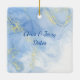 Modern yet Elegant Blue Gold Swirl pattern Christmas holiday ornaments for your favourite photo on the front along with the year,