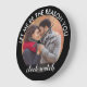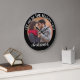 Custom photo clock - upload one of your favorite photos to create your own romantic and unique gift. The wording which frames your picture reads "let me be the reason you clock watch" in modern print and handwritten calligraphy. The design has a color palette of black and white.