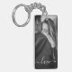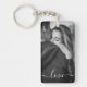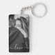 Custom keychain features a favourite photo(s) with a white "love" script overlay design that includes elegant flourishes. The white text can be modified to your favourite saying, font or colour.  You can choose one photo or opt to have one photo on the front and another on the back to make this uniquely yours.  Order today for yourself or to give as the perfect gift for that special person.