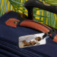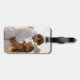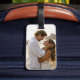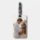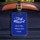 Custom photo luggage tag is shown with a Mr. & Mrs. Just Married text.