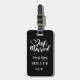Custom photo luggage tag is shown with a Mr. & Mrs. Just Married text.