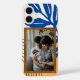 This stylish custom phone case features a modern Matisse inspired abstract botanical illustration in cobalt blue and yellow framing your favourite photo.
