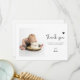 Celebrate your little one’s milestone with this adorable first birthday thank-you card featuring a custom photo, modern handwritten script, and a cute heart icon. The clean layout includes space for a personal message, making it perfect for thanking friends and family for their gifts and well wishes. A stylish keepsake for baby boys or girls and a lovely way to share birthday joy.