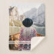 The fabric is really soft, and thick, I’m sitting here with it wrapped around me and it’s so warm! It’s really smooth and sleek on the printed side and fluffy on the back. I love it! Such good quality, so vibrant and clear, not blurry at all! See the photos I’ve attached, there’s no filters or anything on them!