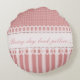Custom photo monogram pink round accent sofa or throw pillow. This pastel pink custom photo pillow features a duet of plaid and striped design including a frame surrounded by a wreath. Add any photo, text or monogram to create one for your loved one or give as a wonderful and unique gift!
